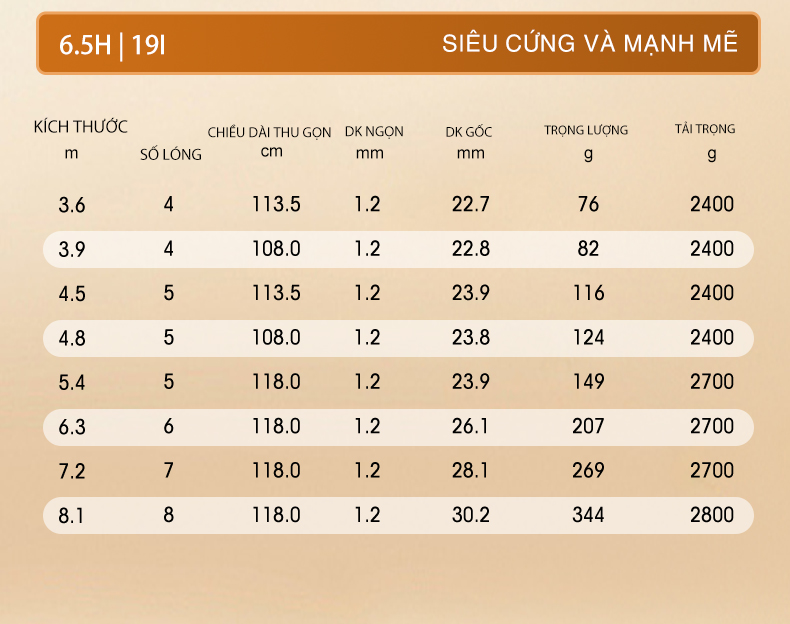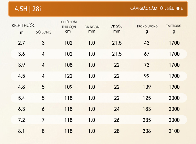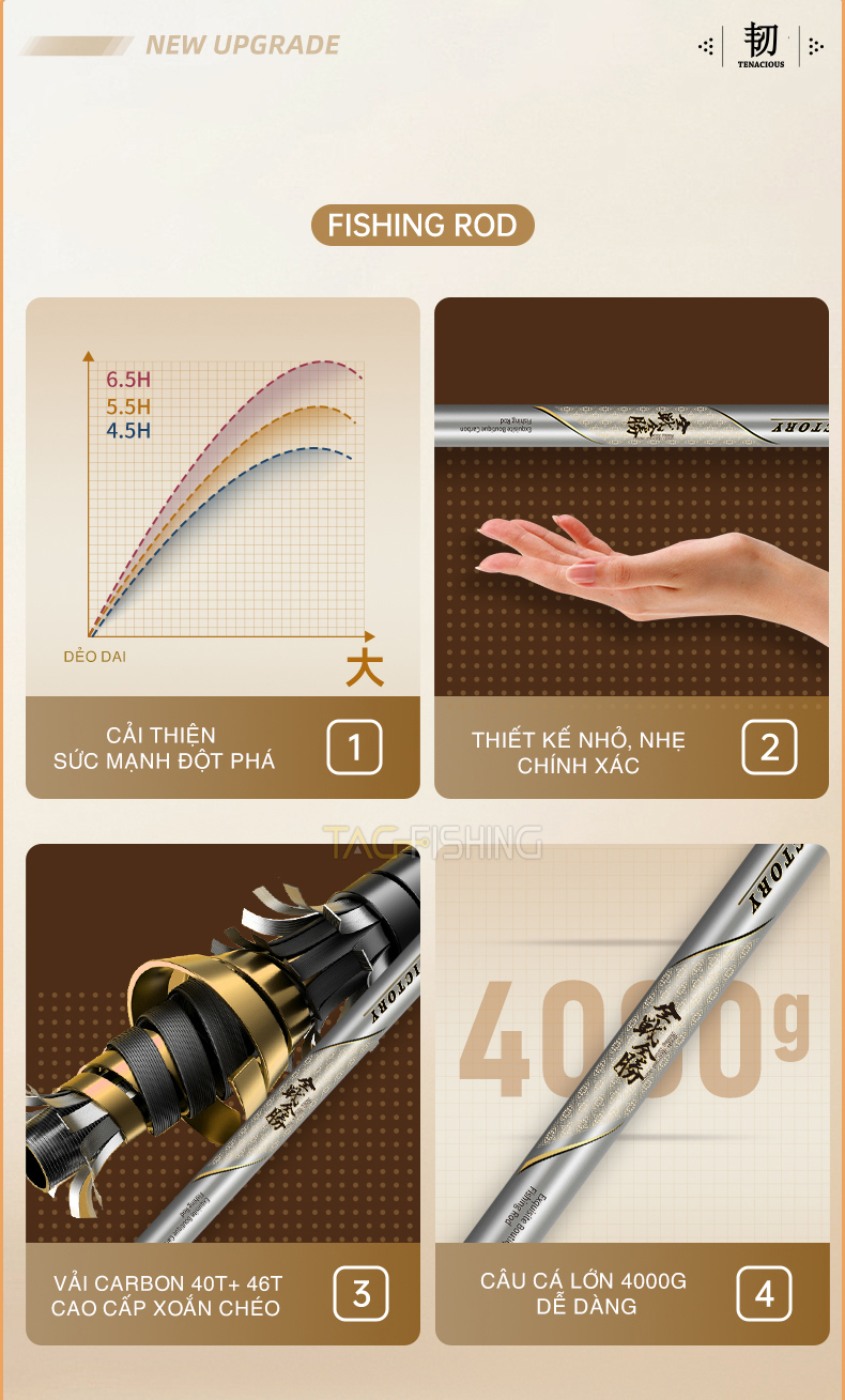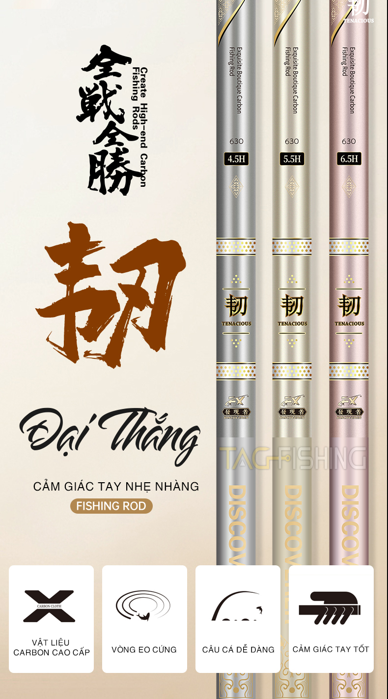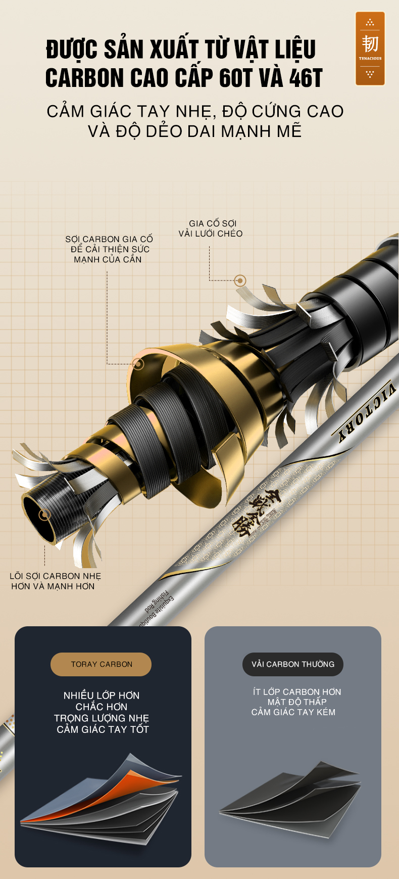 – Được làm từ vật liệu carbon Toray 40T – 46T cao cấp của Nhật Bản mang lại độ nảy tốt cho cây cần.