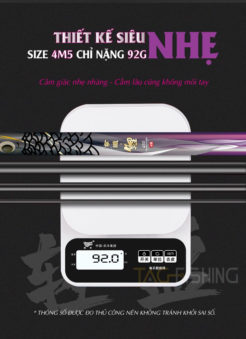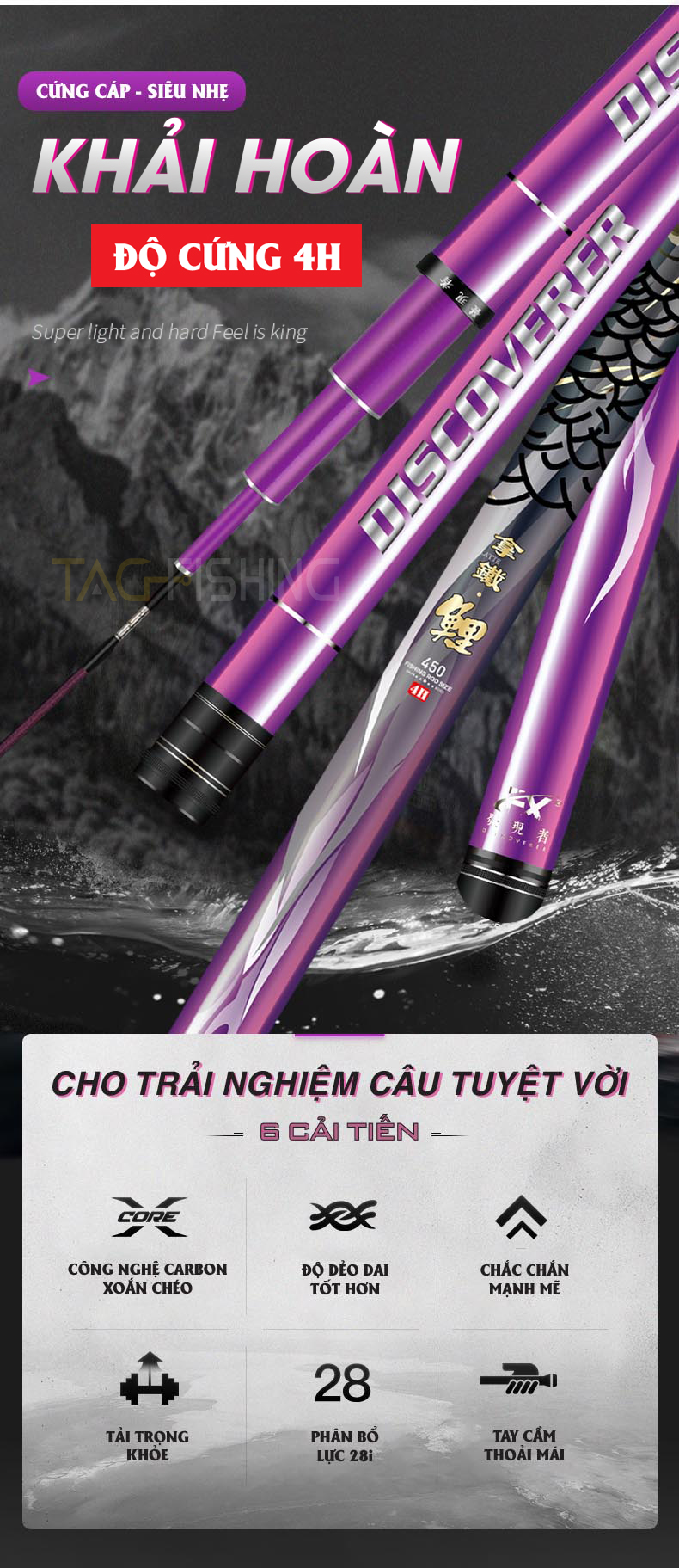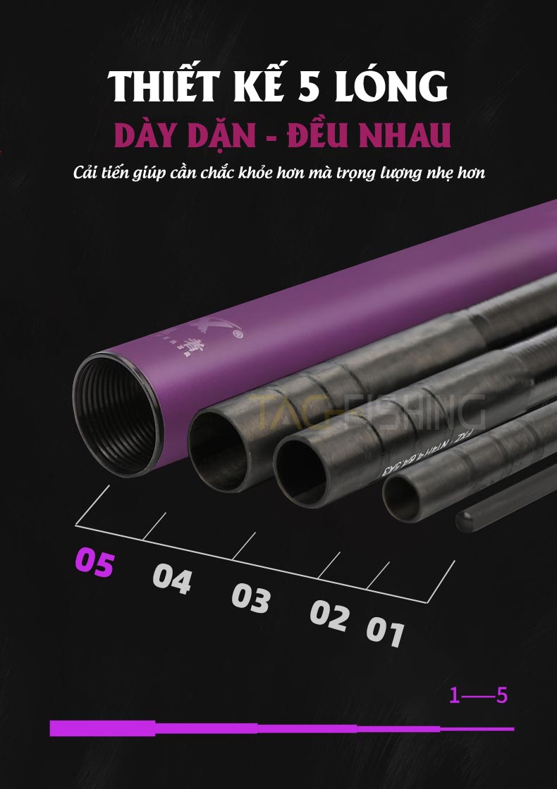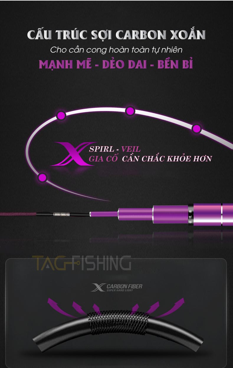 – Được làm từ vật liệu carbon Toray 40T – 46T cao cấp của Nhật Bản mang lại độ nảy tốt cho cây cần.