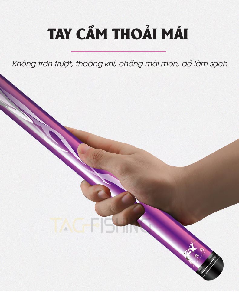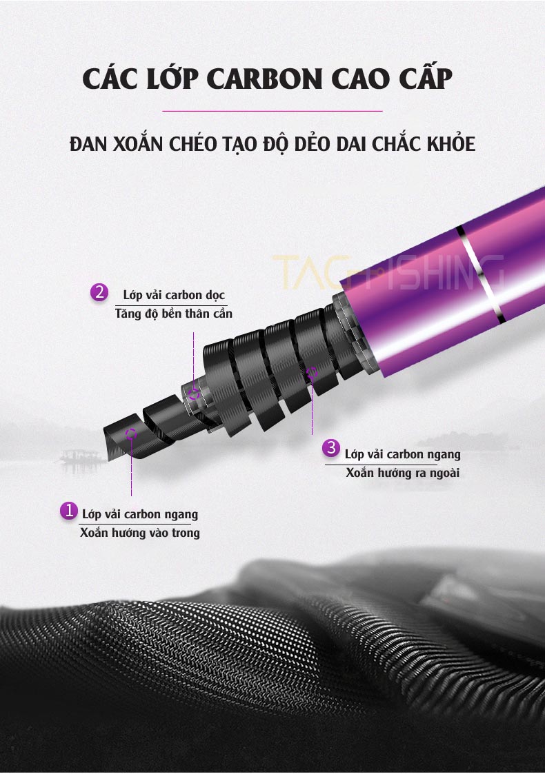 – Được làm từ vật liệu carbon Toray 40T – 46T cao cấp của Nhật Bản mang lại độ nảy tốt cho cây cần.