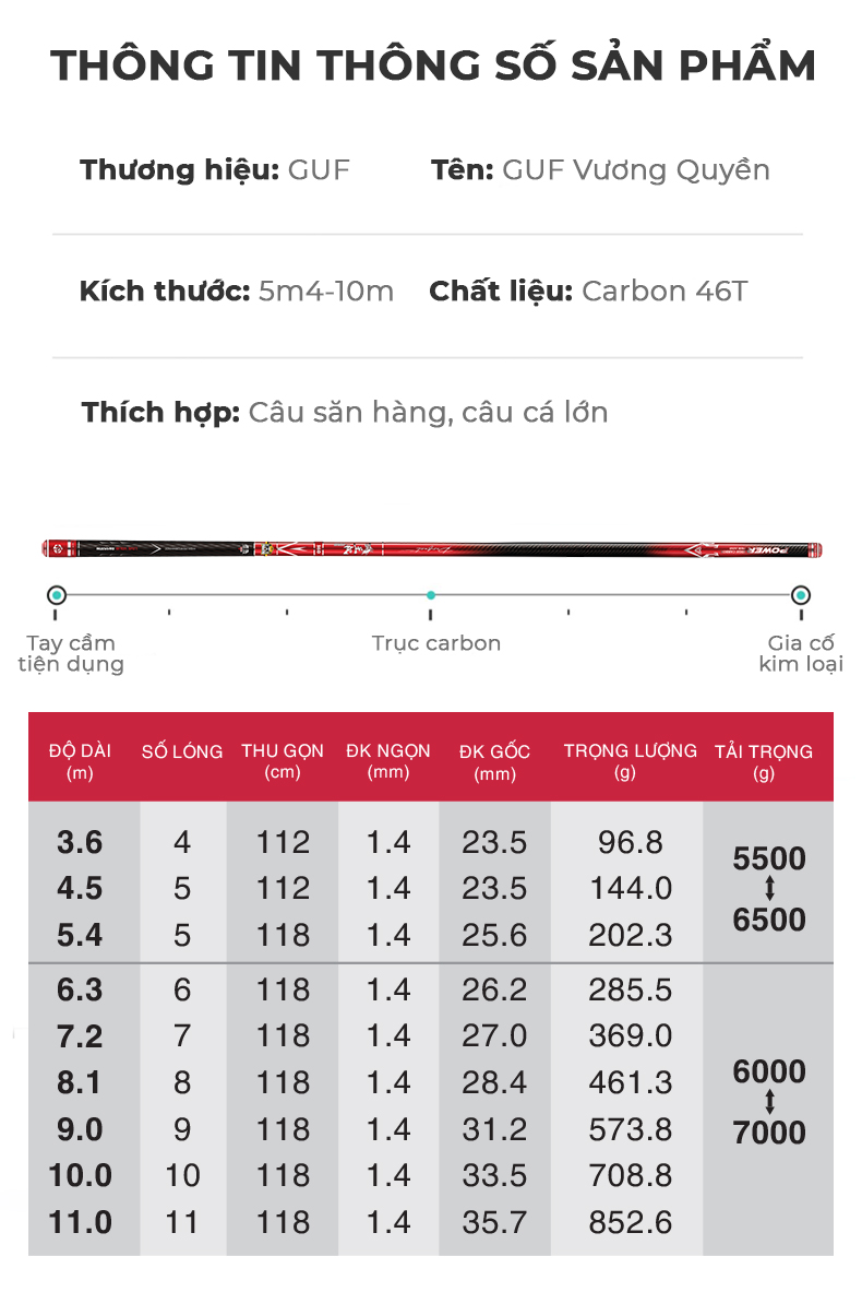 – Với trọng lượng nhẹ chỉ 202.3gr cho size cần 5m4