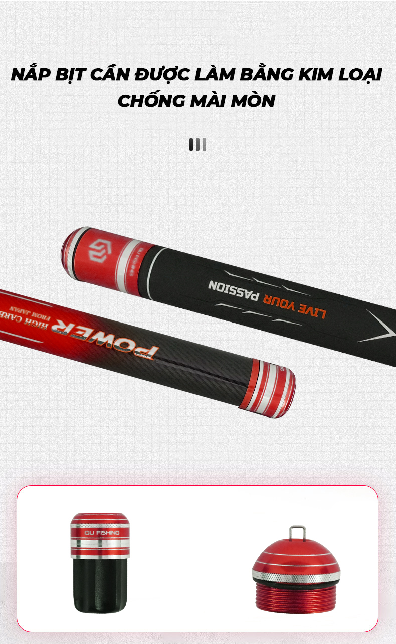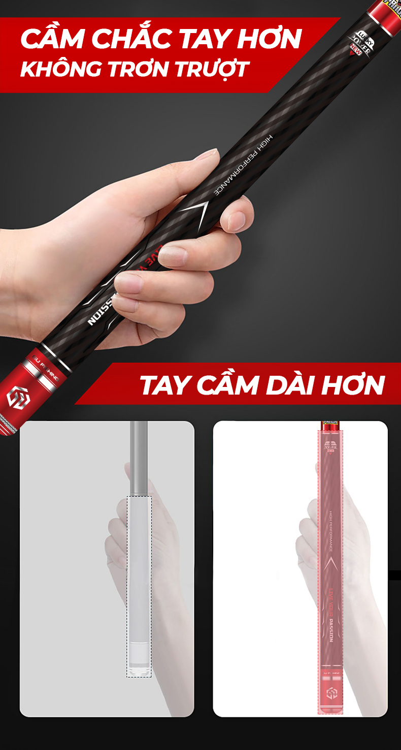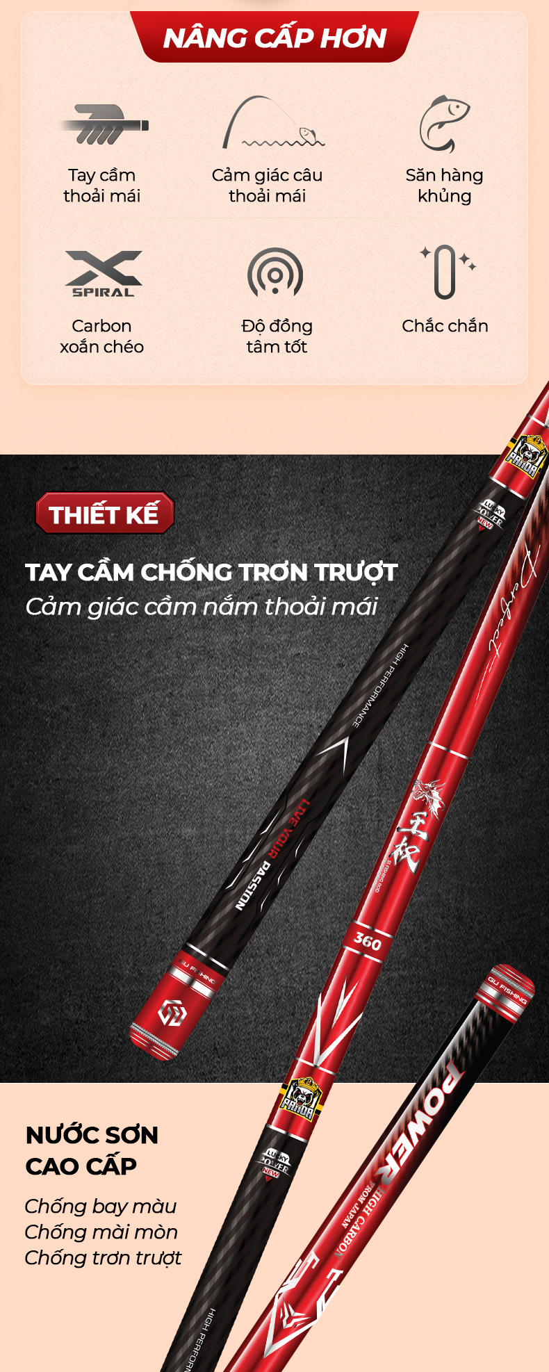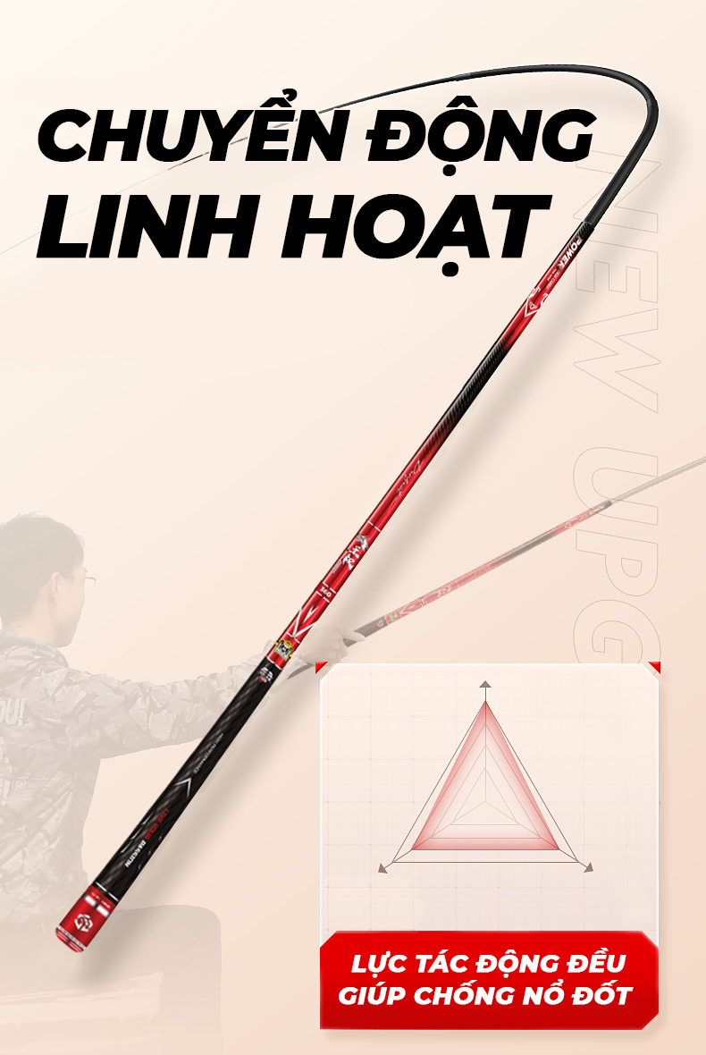 – Được làm từ vật liệu carbon cao cấp xoắn chéo 8 lớp giúp cần khỏe, độ chịu tải cao và trọng lượng nhẹ
