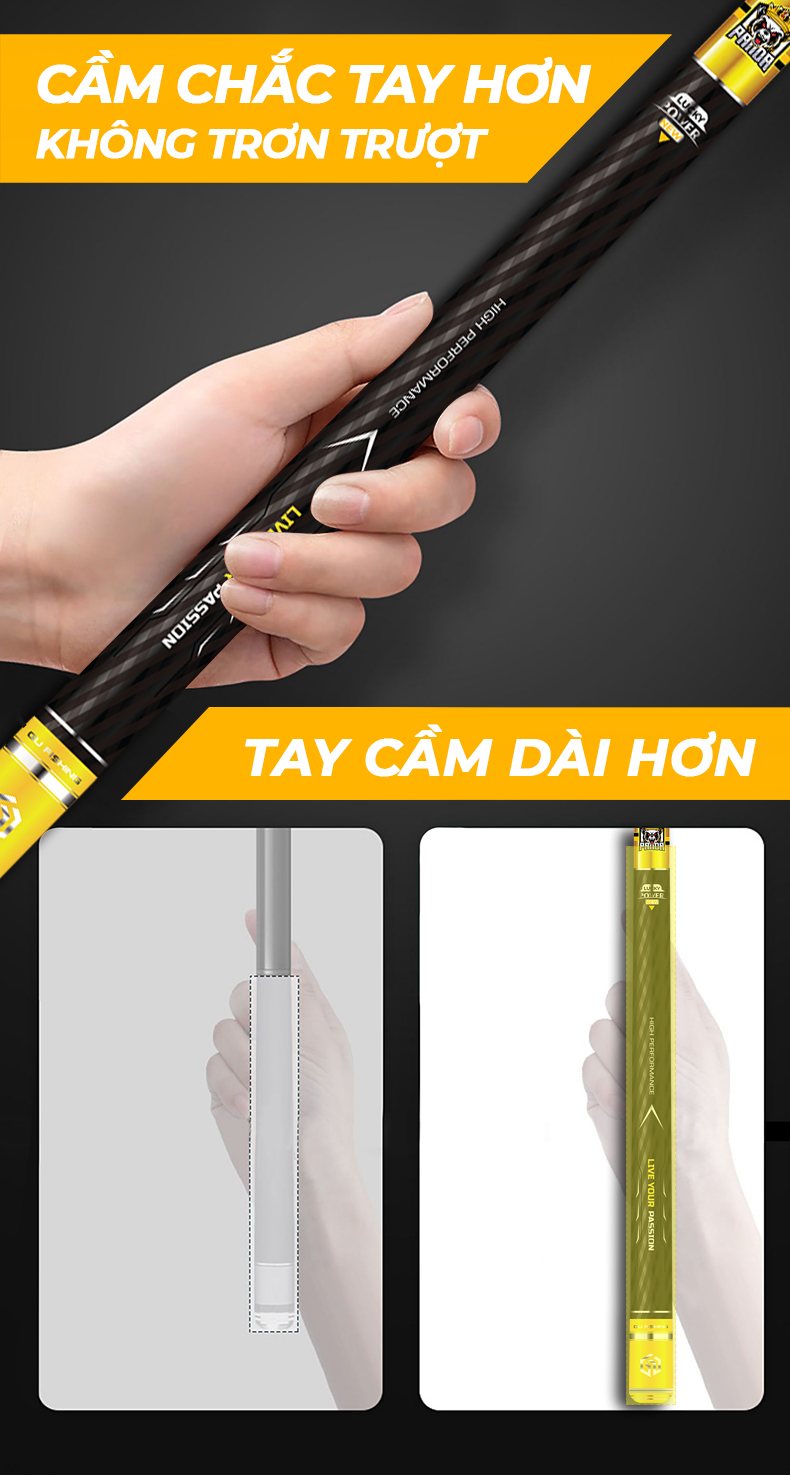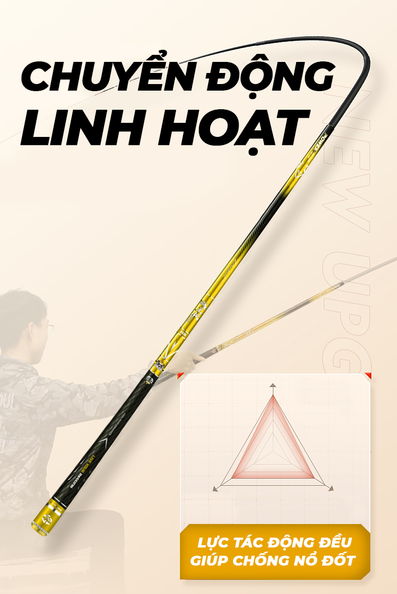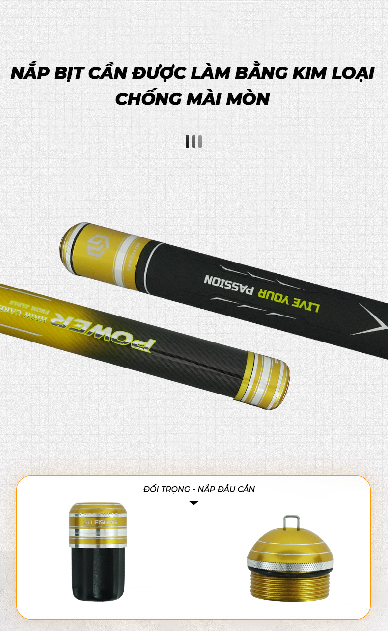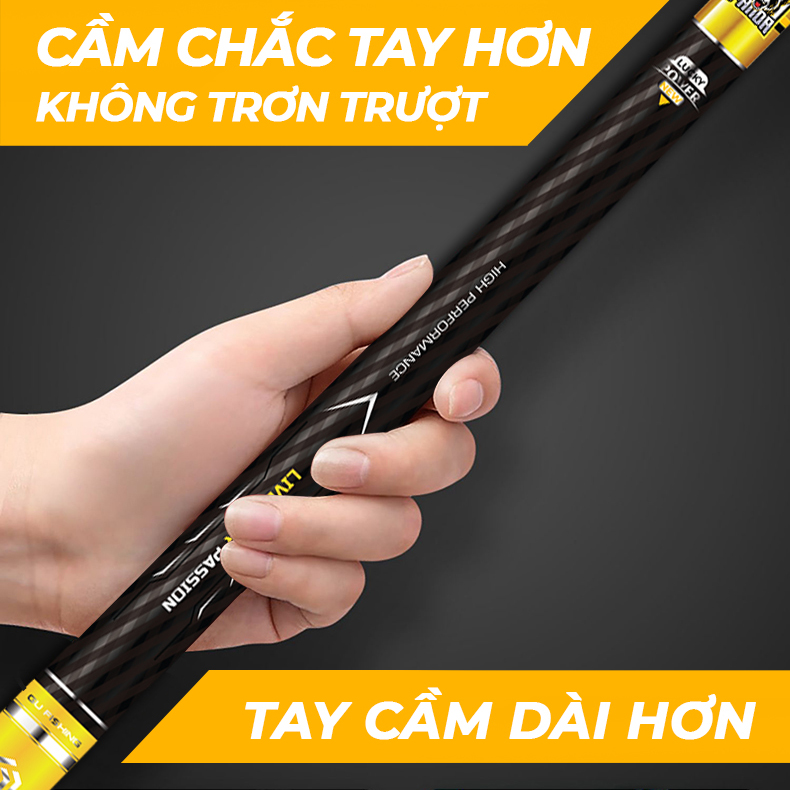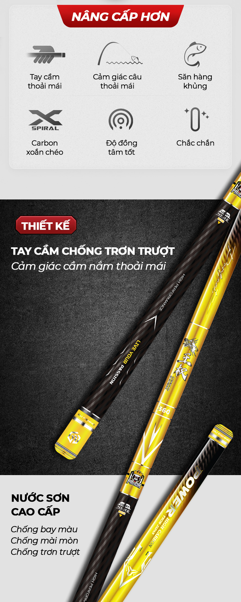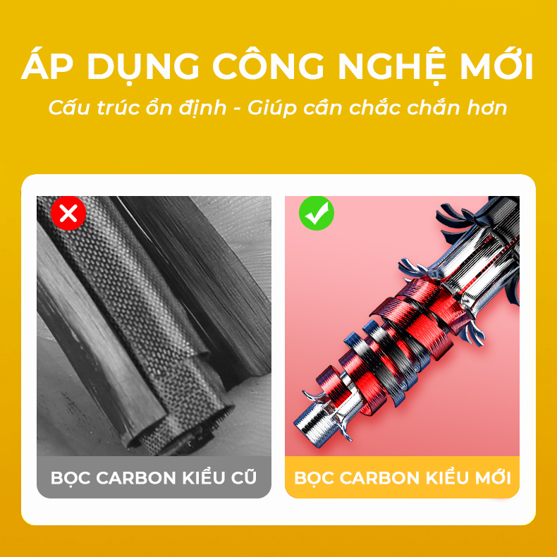 – Được làm từ vật liệu carbon cao cấp xoắn chéo 8 lớp giúp cần khỏe, độ chịu tải cao và trọng lượng nhẹ