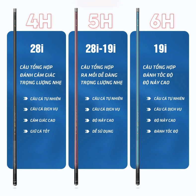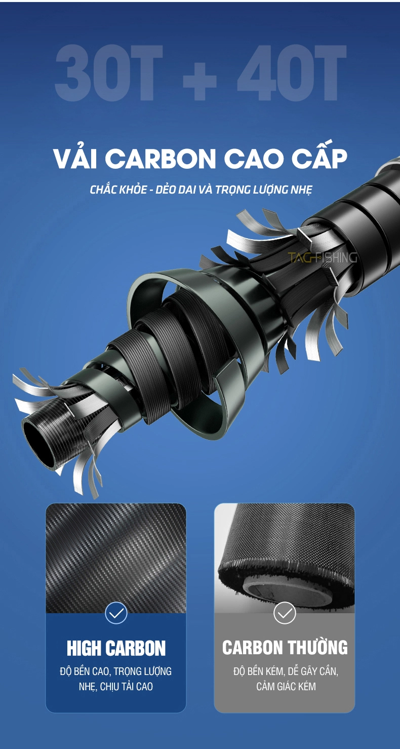 – Được làm từ vật liệu carbon cao cấp 30-40T mang lại độ nảy tốt cho cây cần