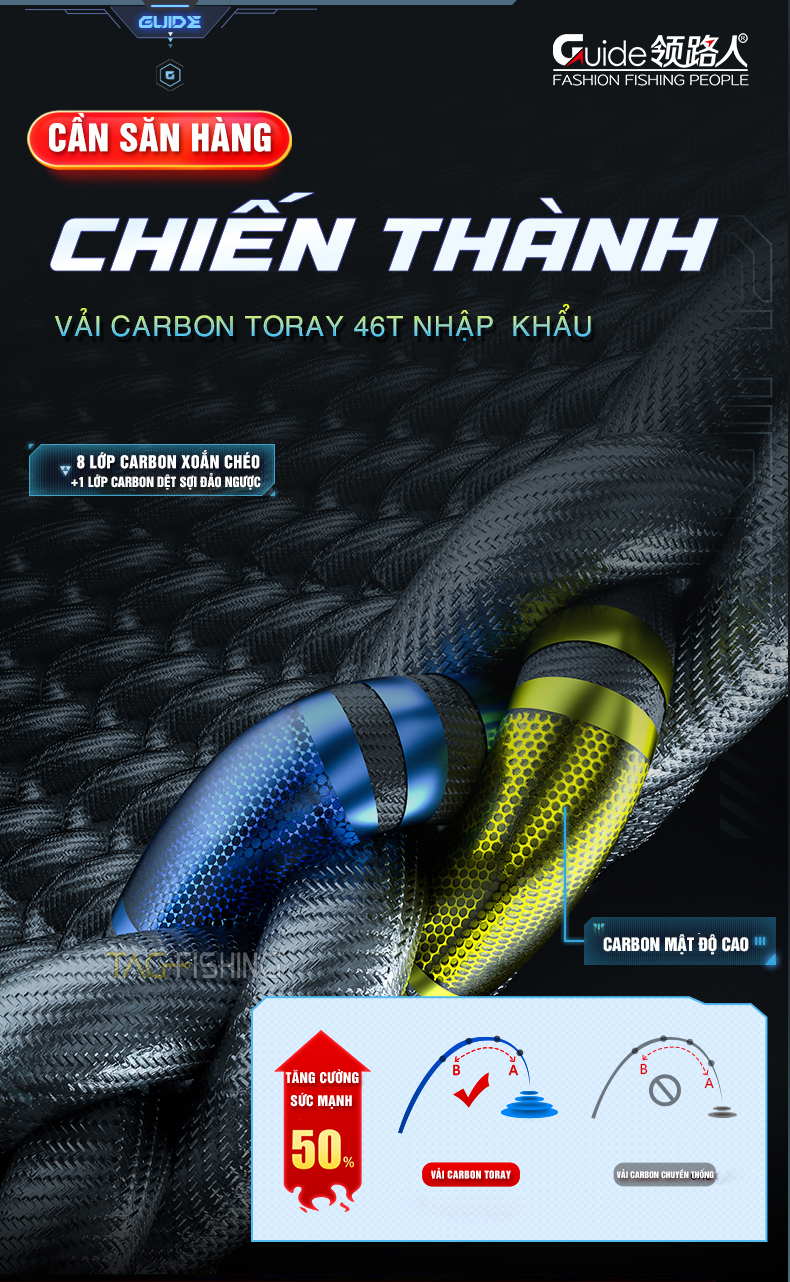 Công nghệ Công nghệ chế tạo của Đức, 8+1 lớp vải Carbon 46T Toray nhập khẩu