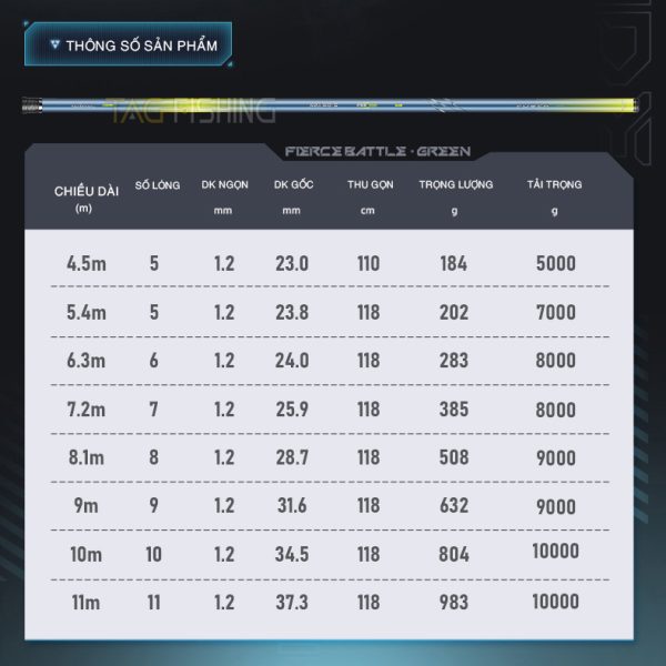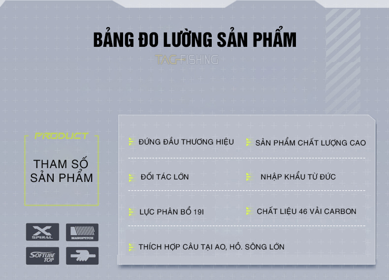 – Với trọng lượng siêu nhẹ chỉ 184gr cho size cần 4m5