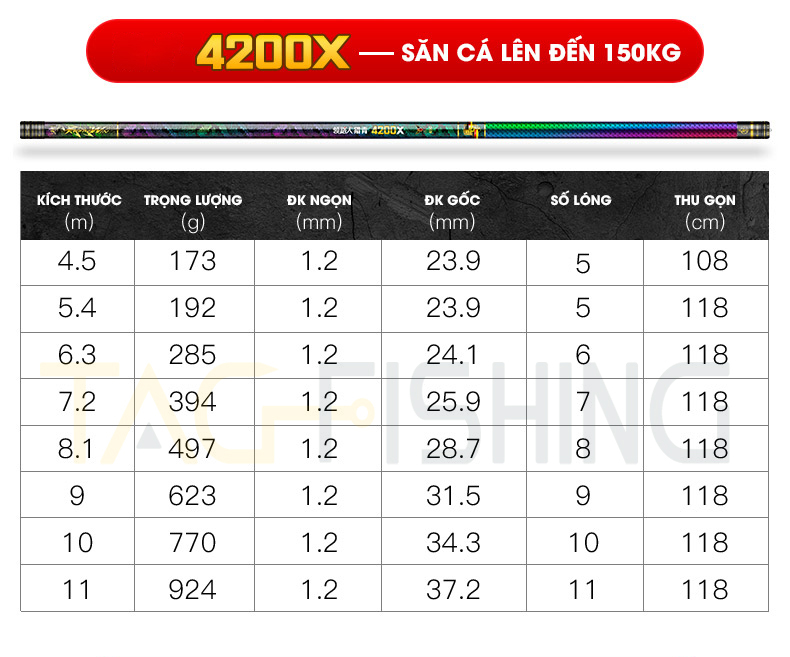 – Với trọng lượng siêu nhẹ chỉ 173gr cho size cần 4m5