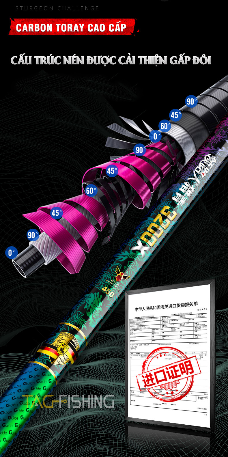 – Được làm từ vật liệu carbon Toray thượng hạng của Nhật Bản mang lại độ nảy cực tốt cho cây cần