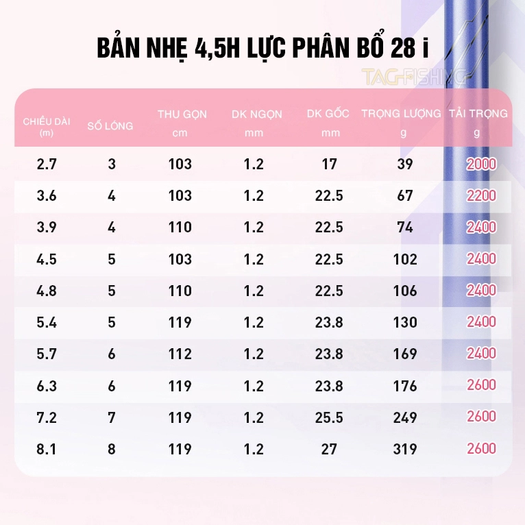 – Với trọng lượng siêu nhẹ chỉ 39gr cho size cần 2m7
