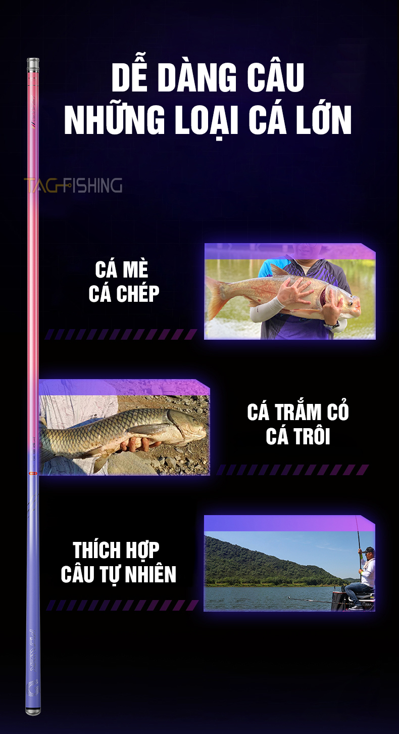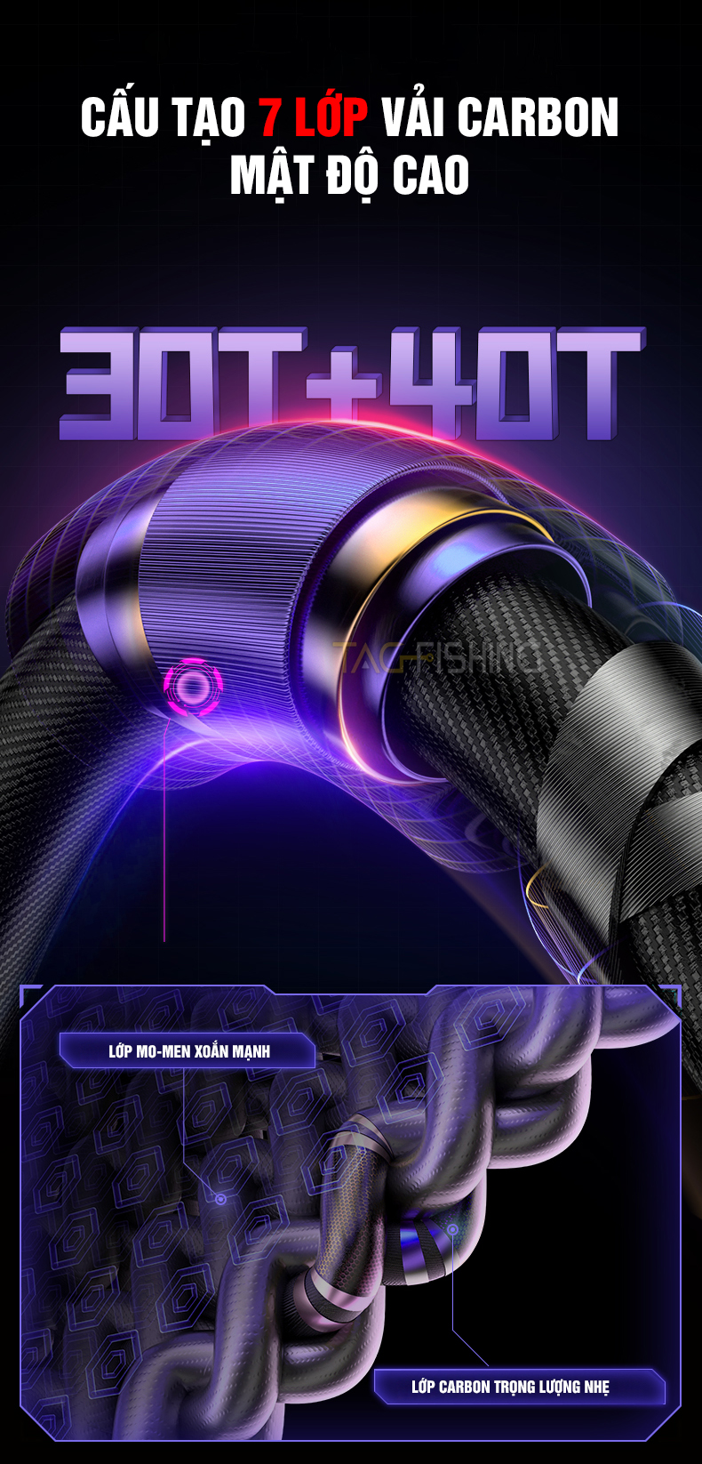 – Được làm từ vật liệu carbon 30-40T của Nhật Bản mang lại độ nảy tốt cho cây cần