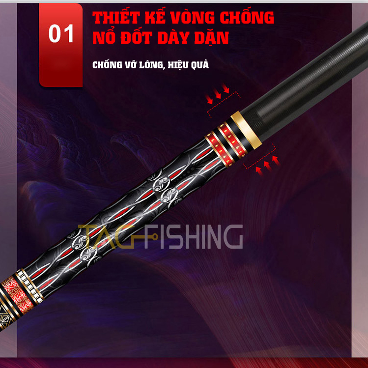 – Được làm từ vật liệu carbon cao cấp 46T – 60T Nhật Bản mang lại độ nảy tốt cho cây cần.