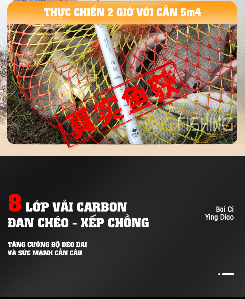 – Được làm từ vật liệu carbon cao cấp 46T – 60T Nhật Bản mang lại độ nảy tốt cho cây cần.