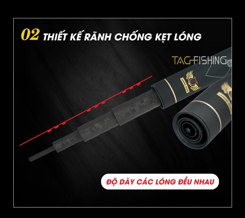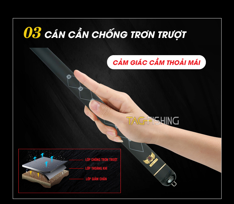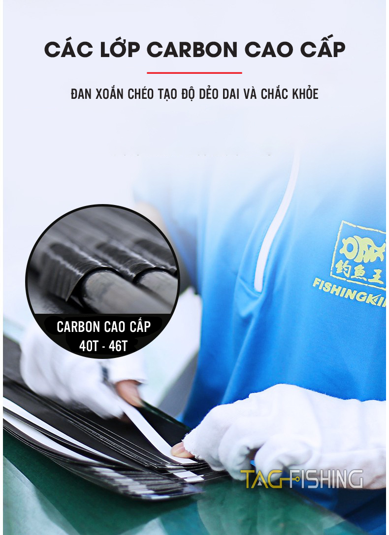 – Được làm từ vật liệu carbon cao cấp 40T – 46T mang lại độ nảy tốt cho cây cần.