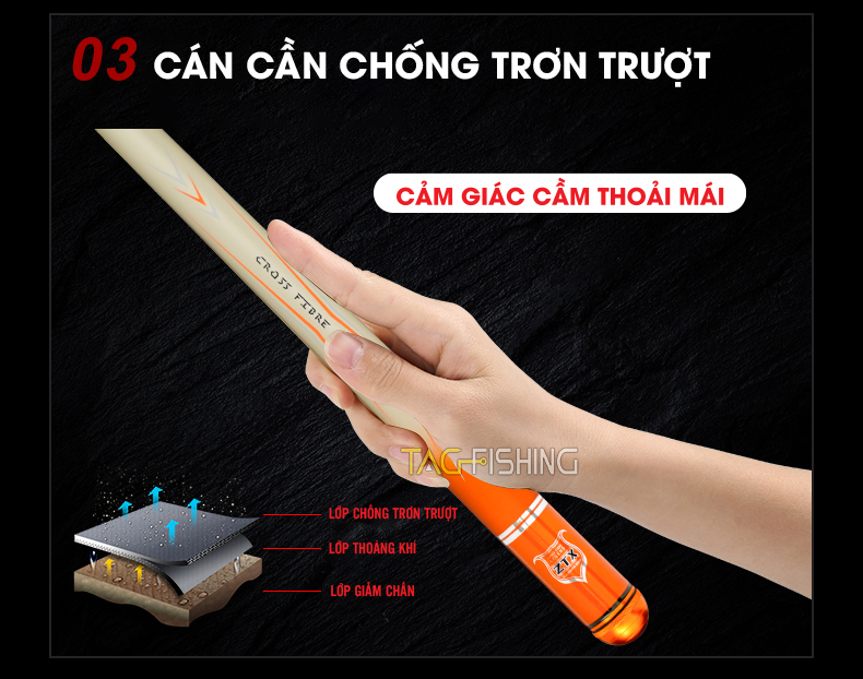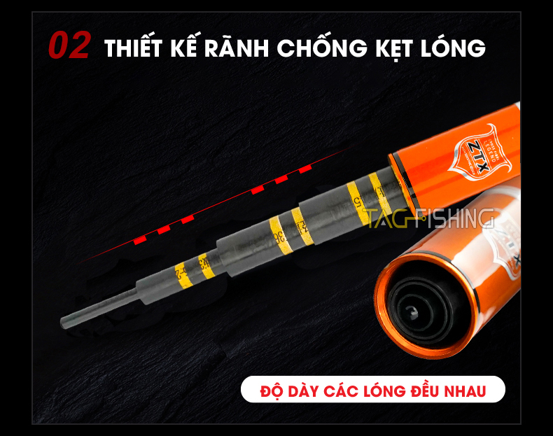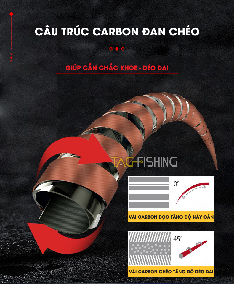 – Được làm từ vật liệu carbon cao cấp 40T – 46T mang lại độ nảy tốt cho cây cần.