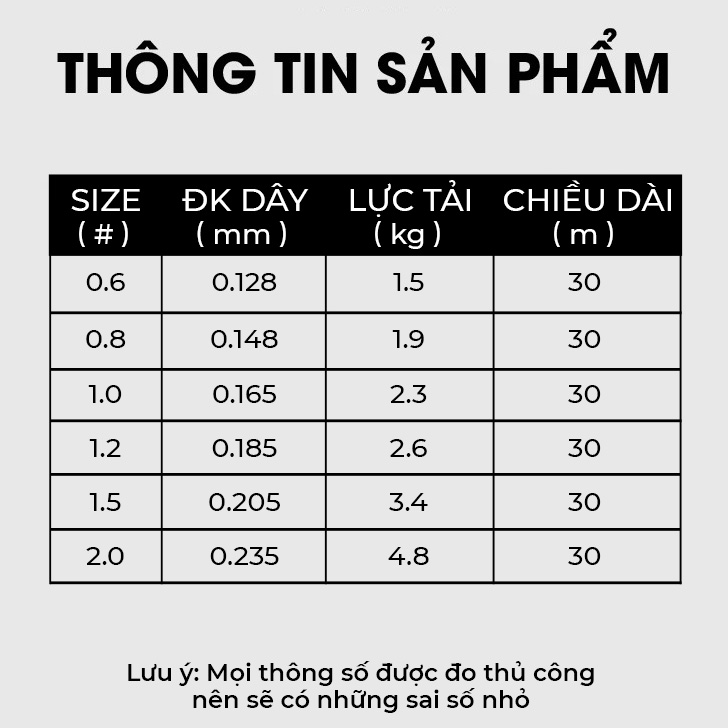Kích cỡ: số 0.6; 0.8; 1.0; 1.2; 1.5; 2.0