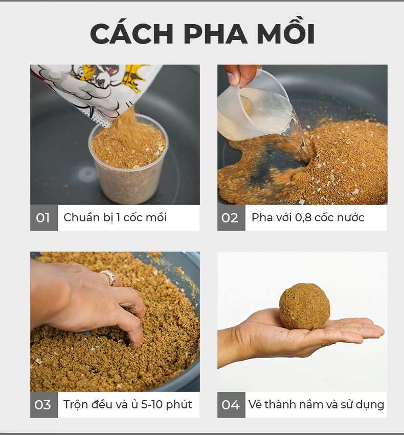 Đặc biệt: công thức dễ dàng, pha mồi cực kì đơn giản, dễ dùng phù hợp cho khách hàng câu tự nhiên, dịch vụ hay thi đấu.