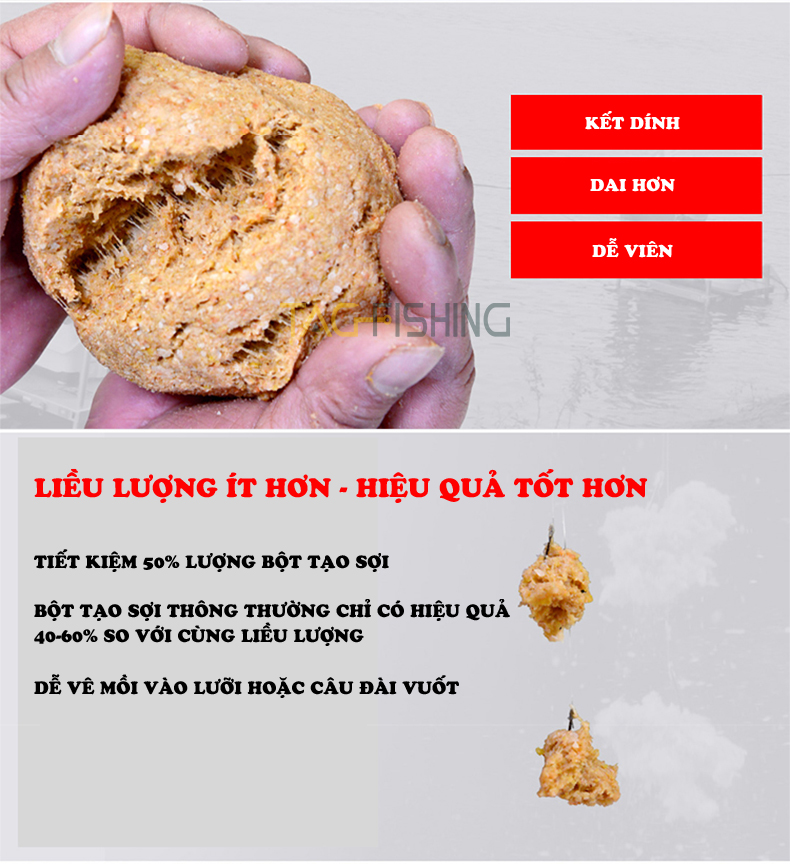 Đặc biệt: công thức dễ dàng, pha mồi cực kì đơn giản, dễ dùng phù hợp cho khách hàng câu tự nhiên, dịch vụ hay thi đấu.