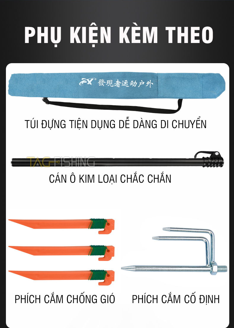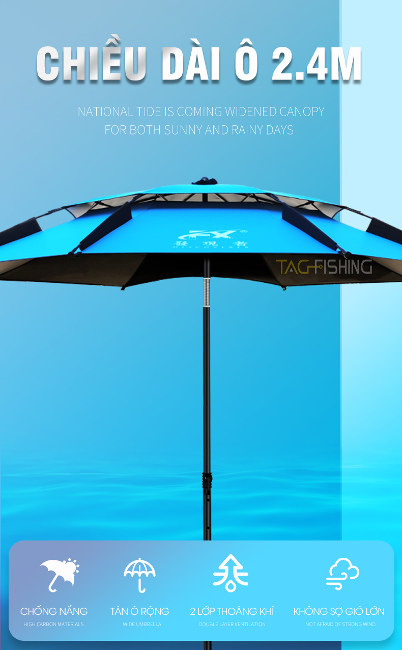 Đường kính tán dù: 220cm