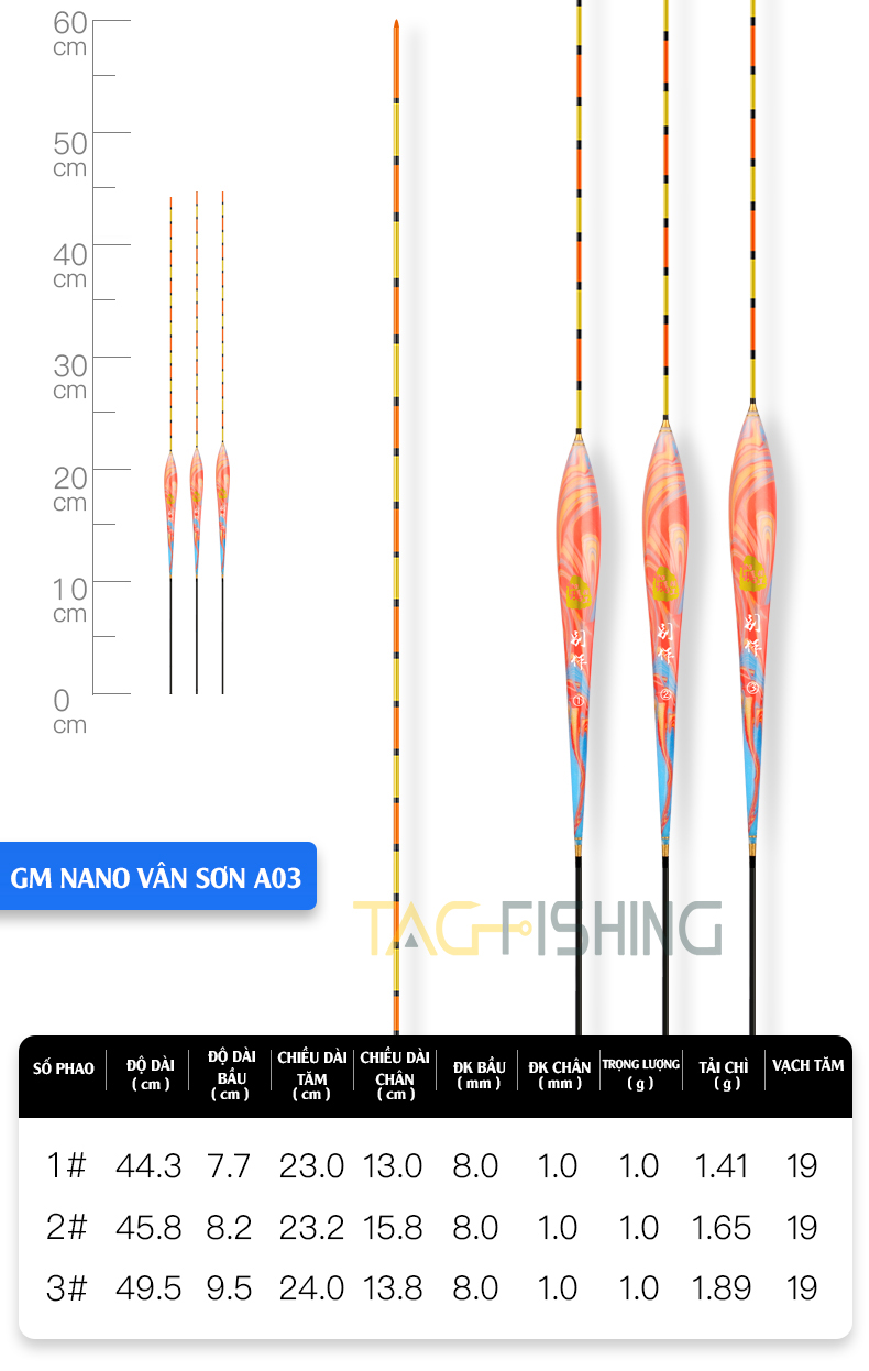 Thân phao: 7.7cm – 8.2cm – 9.5cm