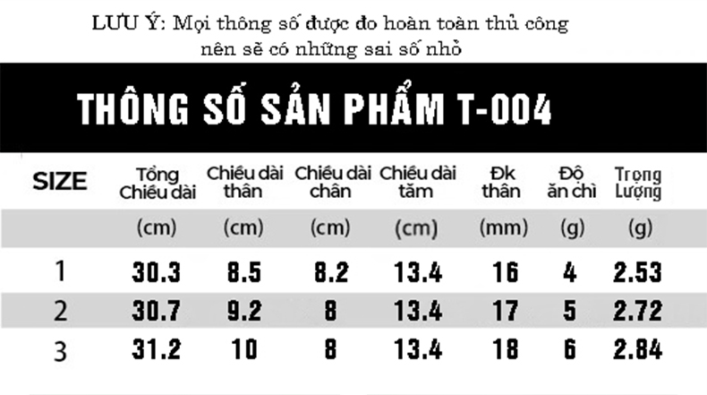 Chiều dài: 30.3 – 30.7 – 31.2 cm