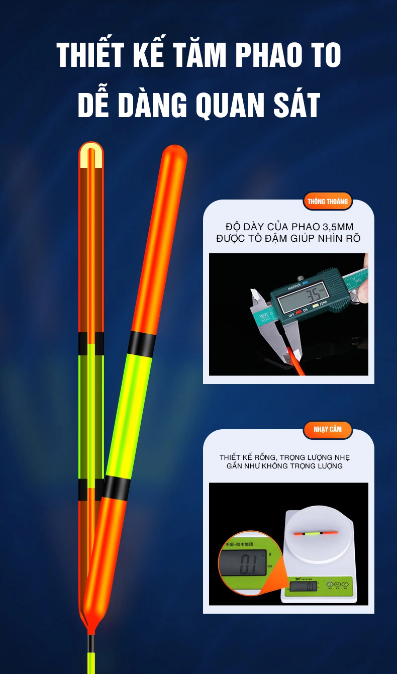 Thân phao: 8.5 – 9.2 – 10.0 cm