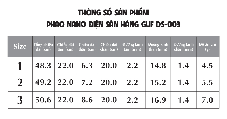 Thân phao: 6.3cm; 7.2cm; 8.6 cm