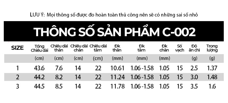 Chiều dài: 43.6 – 44.2 – 44.5 (cm)